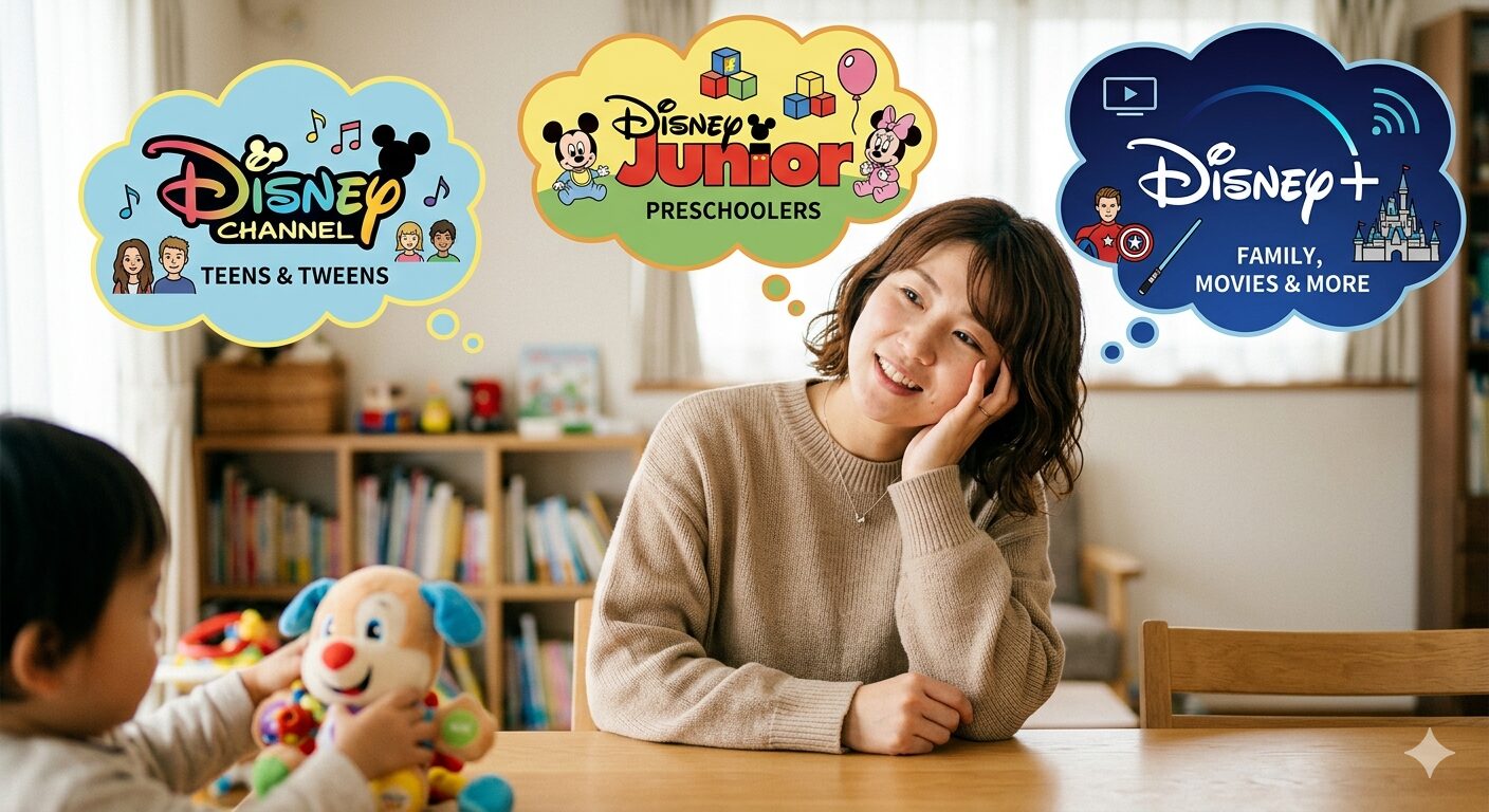 「ディズニーチャンネル」「ディズニージュニア」「ディズニープラス」は、どれも魅力的なサービスですが、「手軽さ・最新作」ならプラス、「録画・安定感」ならチャンネル放送を選ぶのが正解です。