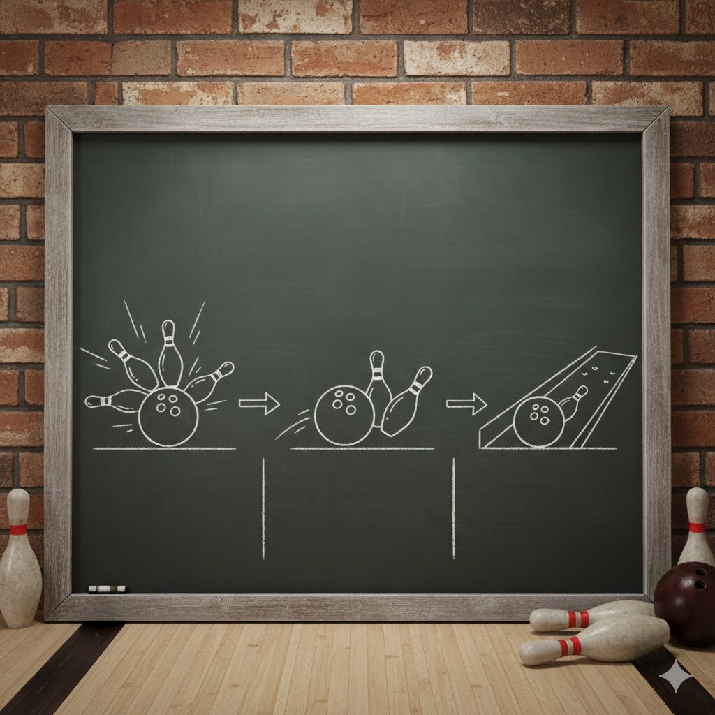 ボウリングは「真ん中のピン(1番ピン)」にしっかり当てることが、スコアアップへの一番の近道です。