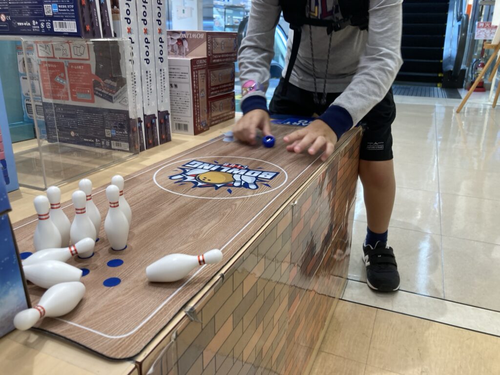 そして、5階おもちゃ売り場へ行くと、なんと、長男のブームであるボーリングがありました。