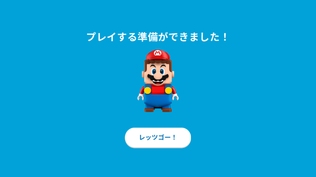 カートを作りマリオを乗せると、ゲームでマリオカートのスタート前のエンジン音が流れ、スタートの合図が流れます。
