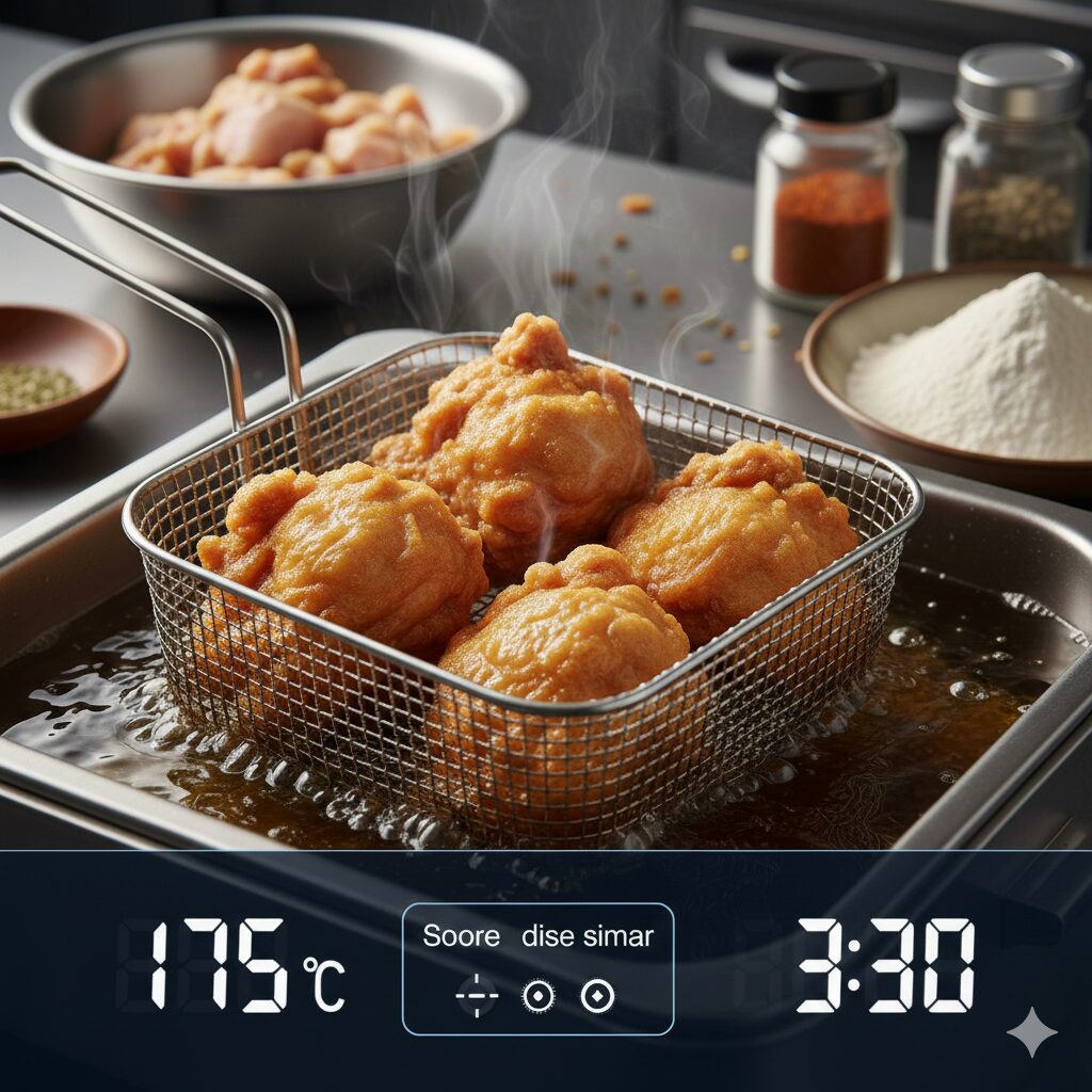 - ポイント: 揚げ時間半分経過時に、バスケットを振る(シェイク)ことで、ムラなく「カリッ」と仕上がります。