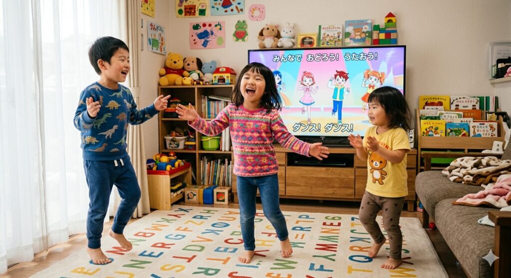 2歳の娘がリボンを手に取って喜ぶ姿や、4歳の息子と一緒に歌う時間は、親としても「見せてよかったな」と感じる瞬間です。